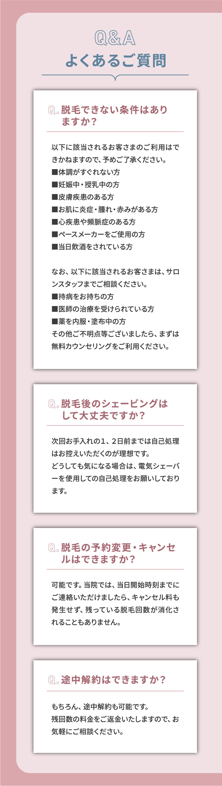 キューエーブロックは、ユーザーの不安や疑問に寄り添う「安心パート」のブロックです。商品・サービスがどんなに魅力的でも、人は不安を感じる商品は買いません。心配事が取り払われて初めて「買おう、やってみよう」と思うものです。商品・サービス・支払いに対する疑問をここで確実に解消し、コンバージョンへの後押しにしましょう。
