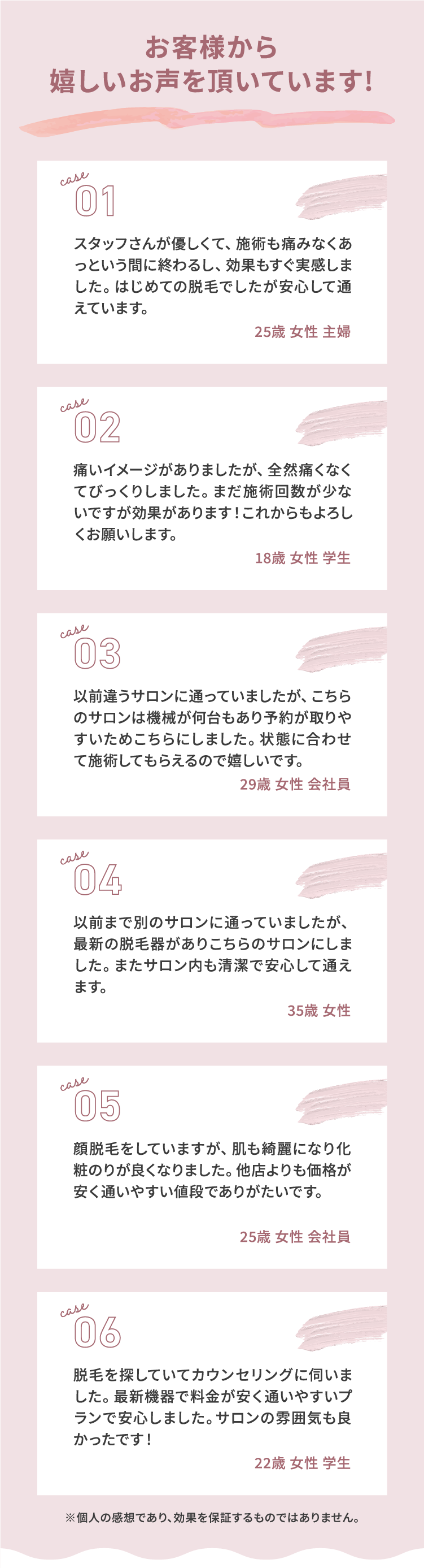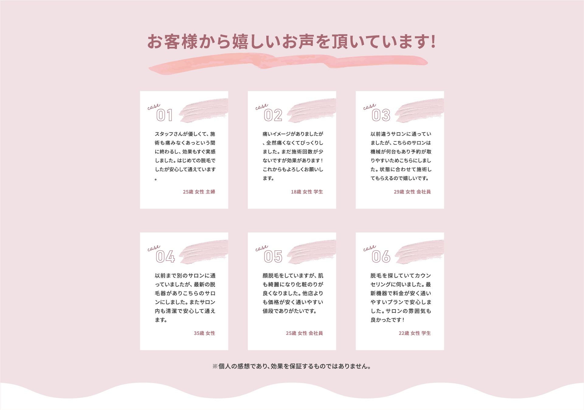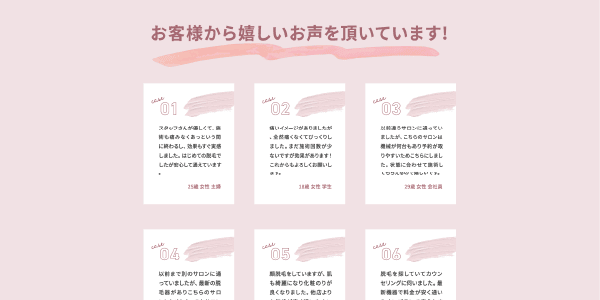 商品やサービスを利用したユーザーの声を載せることで、信頼性や満足度が高いことを証明することができます。また、サービスの魅力や利点が「クチコミ」によって説得力を持って伝わります。潜在的な顧客は、他の人々が製品やサービスを評価し、良い結果を得ていることを知ることで、自信を持って選択できます。