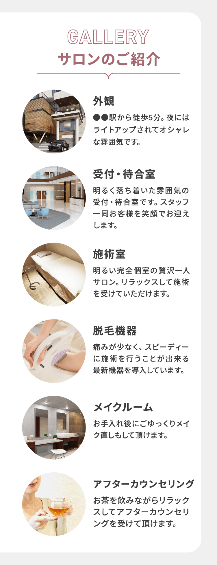 「こんな悩みはありませんか?」や「ダイエットがなかなか続かない…」等、ユーザーの気持ちを代弁するワードを投げかけることで共感を誘うブロックです。「私のことだ!」「わかってくれている」のような共感を持ってもらえれば、サービスに対する興味が高まります。ワードが具体的であればあるほど共感は深くなり、あたりさわりのない内容だと共感が浅く、商品やサービスへの興味も弱くなります。抱える問題の内容を、具体的に分かりやすく伝える言葉が必要です。